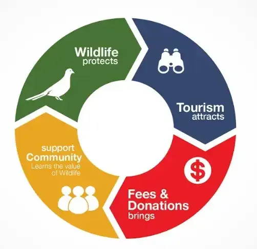 - Employment: Directly to community members through salaries for Committee members and service provision for guides, cooks, housekeeping, site manager.