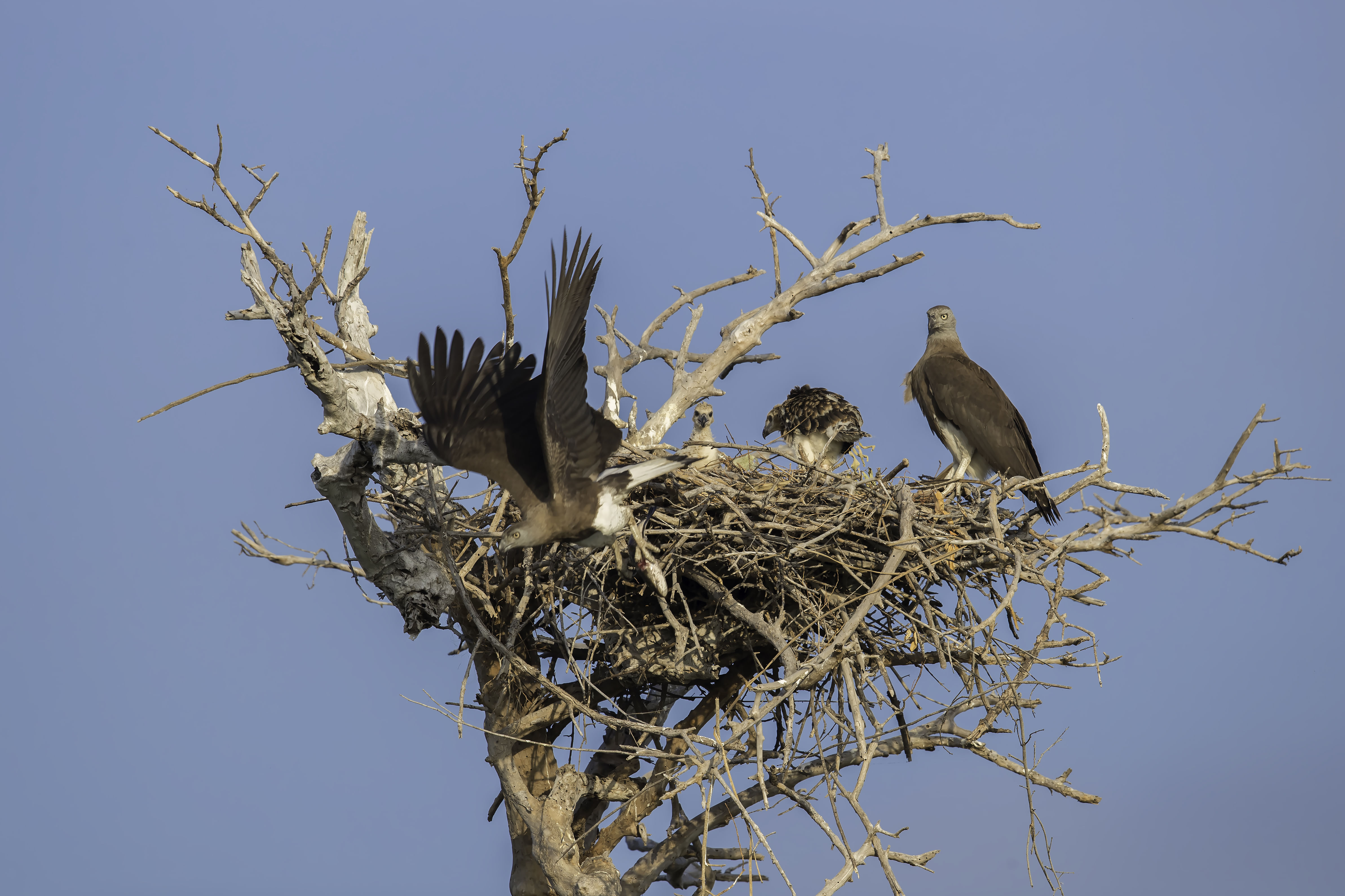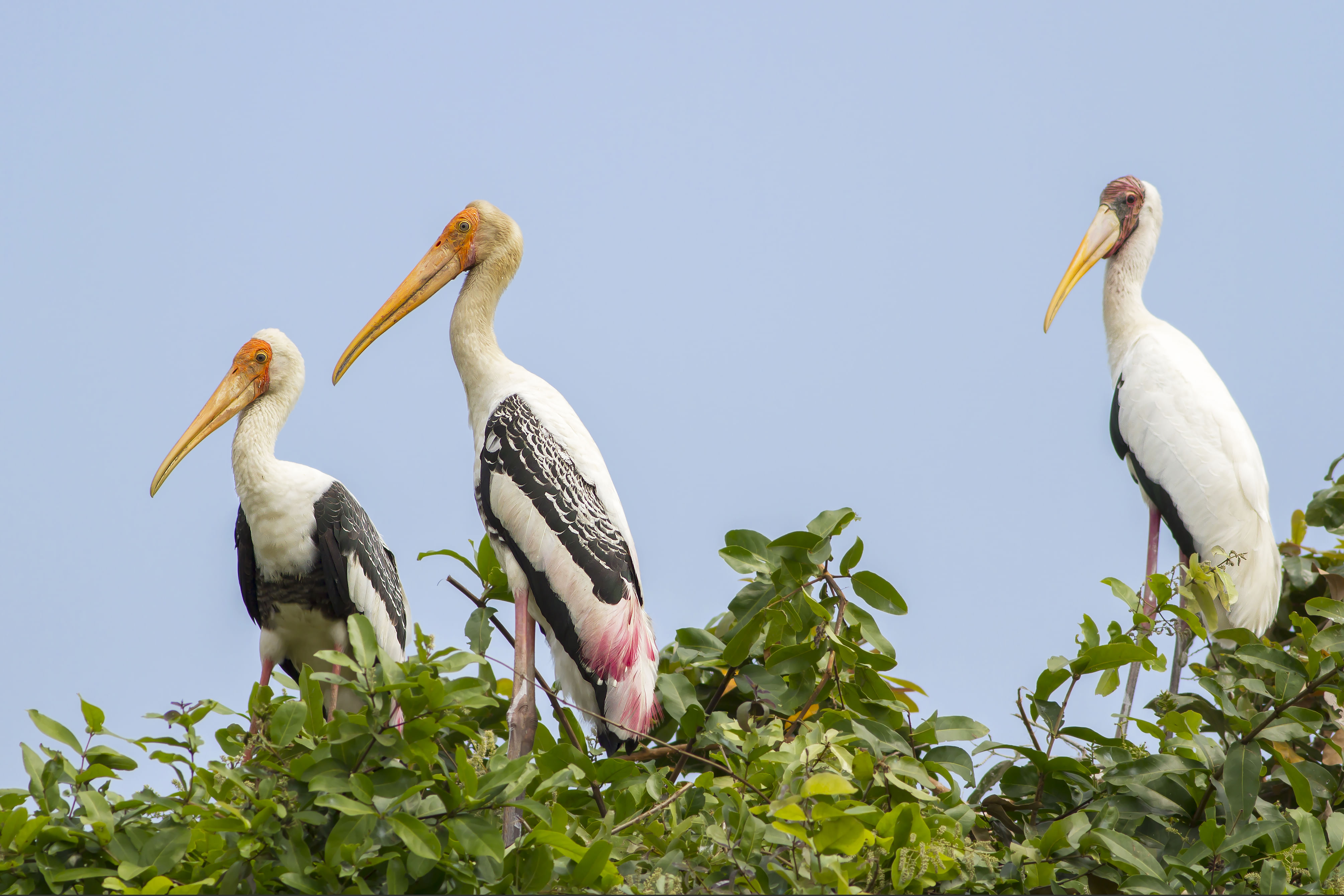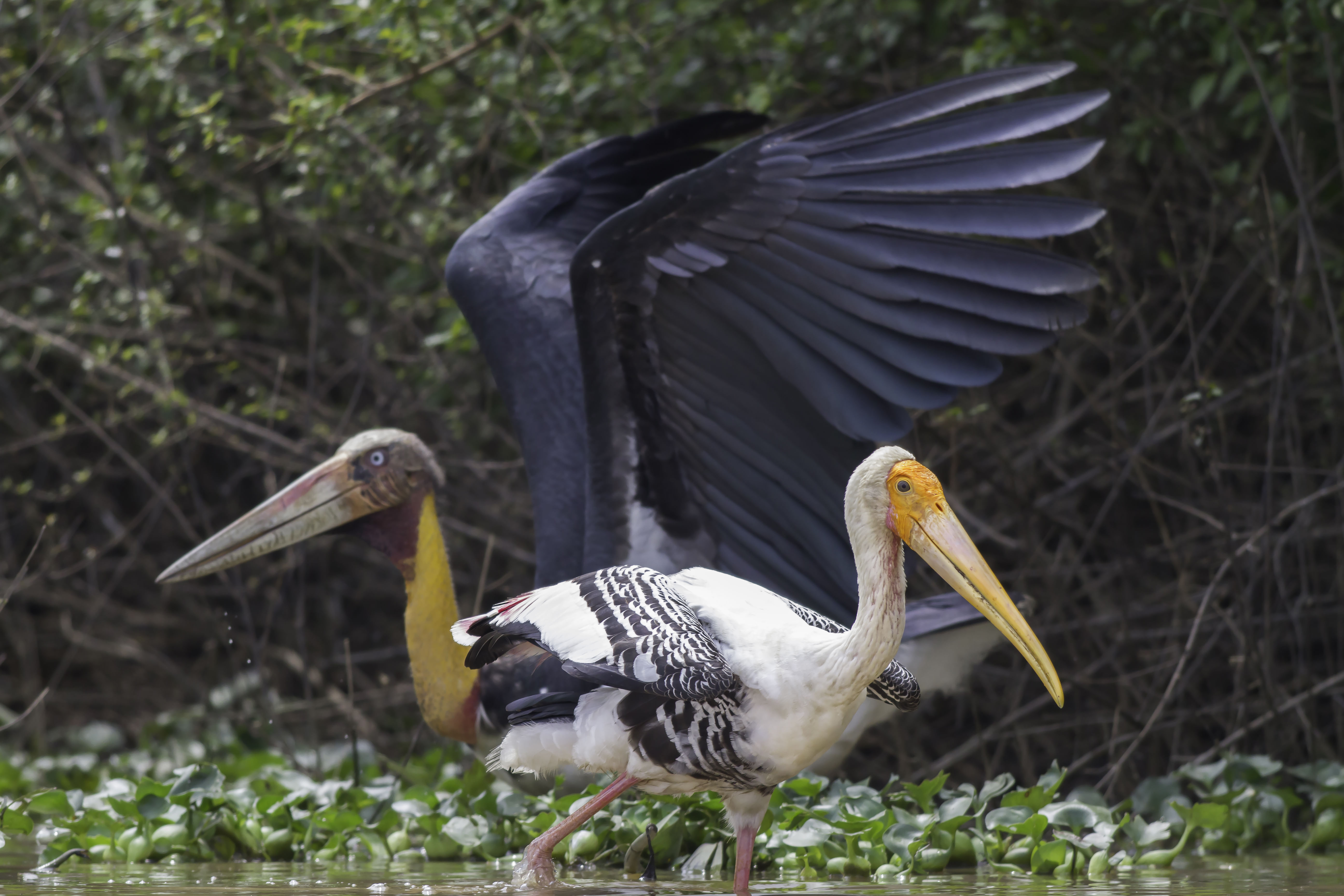 Greater Adjutant, Lesser Adjutant, Milky Stork, Grey-headed Fish-Eagle, Spot-billed Pelican, Painted Stork, Great Cormorant, Asian Openbill, Oriental Darter, Indian Cormorant